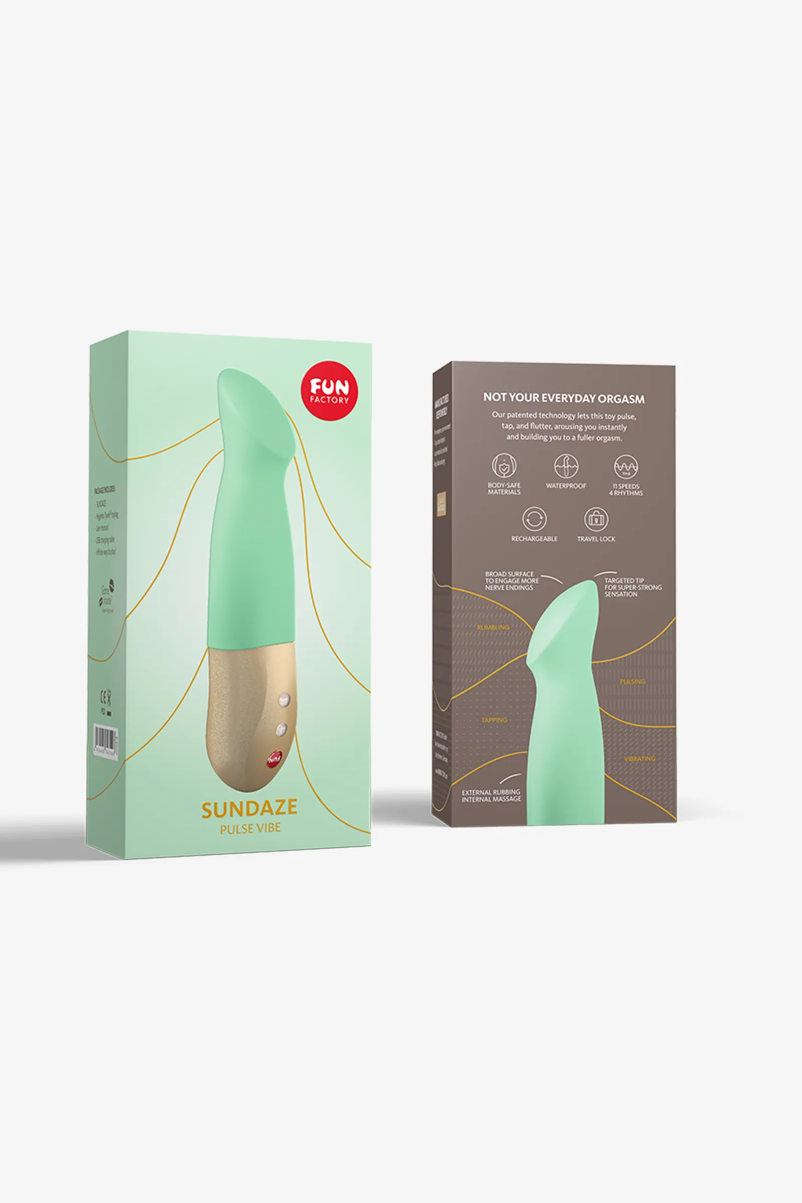 СУПЕР-НОВИНКА! Универсальная модель пульсатор и вибратор в одном корпусе. Вибратор - пульсатор SUNDAZE. Классный, необычный, суперский, и это не все восторженные отзывы, которые вы услышите. Это самый тихий вибратор-пульсатор из нашей линейки. Точечное попадание на точку G. Мягкая бархатистая поверхность! Нажми кнопку и посмотри, как вибрация передаётся на головку вибратора. Он найдет каждую эрогенную зону и заставит тебя расслабиться. Этот продукт создан для длительных, интенсивных и совершенно невероятных оргазмов! Мы не говорим о каком-то быстром и поверхностном клиторальном оргазме, а о новой инновационной технологии, которая обеспечивает глубокие и полноценные оргазмы, которые действительно удовлетворяют. Запоминание любимого режима. Просто подержи 5 сек. кнопку FUN и в следующий раз, при первом включении ты сразу почувствуешь любимый режим; 3 уровня вибрации и 8 режимов пульсации, 3 динамических режима, благодаря раздельному управлению; стильная рукоятка SUNDAZE не только красива, но и очень практична, даже если ты любишь использовать много смазки; SUNDAZE полностью водонепроницаемый. Он прекрасно подойдет тем, кто любит игры в душе или ванной;