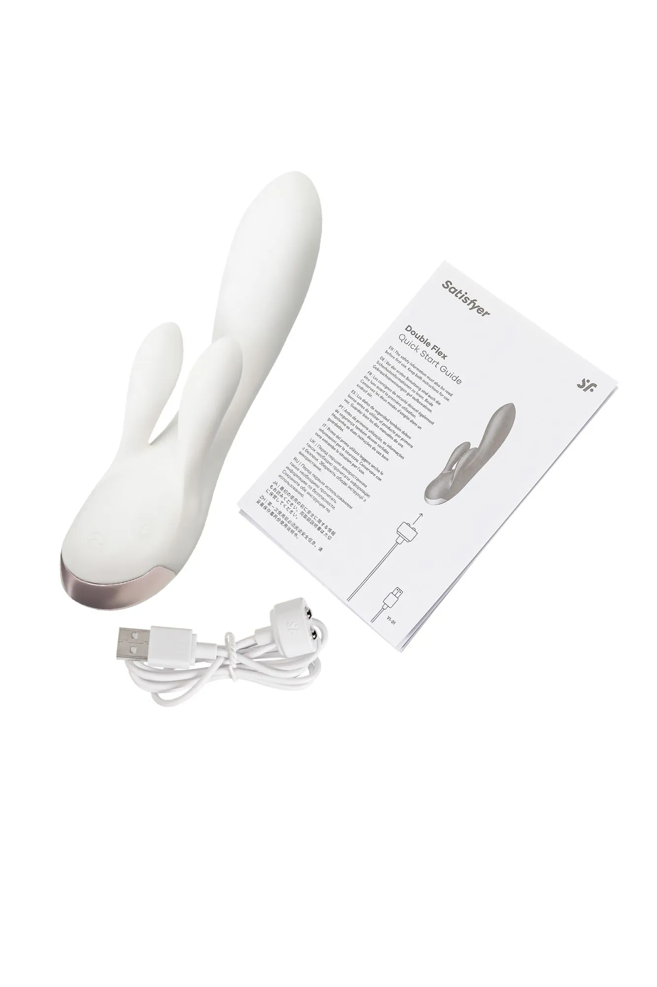 Позвольте себе тройной заряд энергии и наслаждения с вибратором Double Flex от Satisfyer. Этот кролик с тремя сверхмощными моторами погружает в мир одновременной стимуляции точки G и клитора. Гибкий Double Flex легко подстраивается под вашу анатомию, создавая уникальный контур, благодаря технологии Silicone Flex. Клиторальный отросток разделен на два ушка, которыми он обнимает клитор и дарит захватывающее удовольствие половым губам. Вариативность использования радует разнообразием – клиторальные и вагинальный отростки могут работать в разных ритмах. В вашем распоряжении 12 предустановленных режимов вибрации. Испытайте удовольствие по-настоящему с бесплатной функцией управление при помощи смартфона с поддержкой Bluetooth через приложение Satisfyer Connect, доступное на Android и iOS. Создавайте собственные уникальные режимы вибрации, существенно расширив возможности предустановленных режимов. Девайс способен вибрировать даже в такт музыке. Satisfyer Connect не имеет границ – передавайте управление наслаждением партнеру даже на большом расстоянии. Плавные изгибы и эргономичная форма обеспечивают легкое проникновение. Double Flex удобно лежит в руке и радует своим стильным и элегантным дизайном. Шелковистое силиконовое покрытие — фирменный знак Satisfyer, тактильно нежный и приятный на ощупь, он быстро адаптируется к температуре вашего тела. Длина вагинальной части 15,5 см, а диаметр – 3,4 см, что делает кролика идеальным вариантом для первой игрушки. Ощутите все прелести влажных приключений, ведь благодаря водонепроницаемой оболочке IPX7 Double Flex не только легок в уходе, но и безопасен для использования в ванне и душе. Чтобы получить максимум удовольствия и сохранить материал в наилучшем виде, рекомендуется пользоваться качественной смазкой на водной основе. После использования обязательно очищайте вибратор теплой водой со специальными бактерицидными спреями для интимных товаров. Особенности: 3 мощных мотора и вибрация по всей игрушке 2 клиторальных отростка 12 режимов вибрации и неограниченное количество режимов в приложении Satisfyer Connect с подключением через Bluetooth. Стильный современный дизайн и нежный, эластичный силикон без запаха, без аллергенов и вредных для здоровья веществ. Водонепроницаемый (IPX7) Идеальный вариант для первой игрушки Перезаряжаемый, магнитный USB-кабель. 15 лет гарантии от производителя.