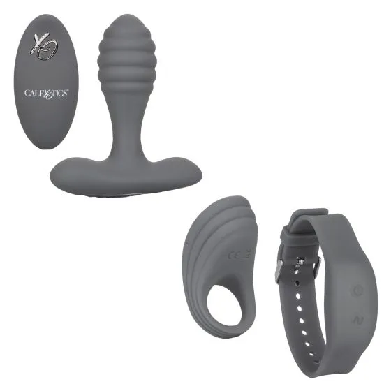 Silicone Remote Adventure Set - набор для двоих, состоящий из анального вибромассажера для ношения с управлением при помощи пульта управления и эрекционного виброкольца с управлением при помощи браслета.