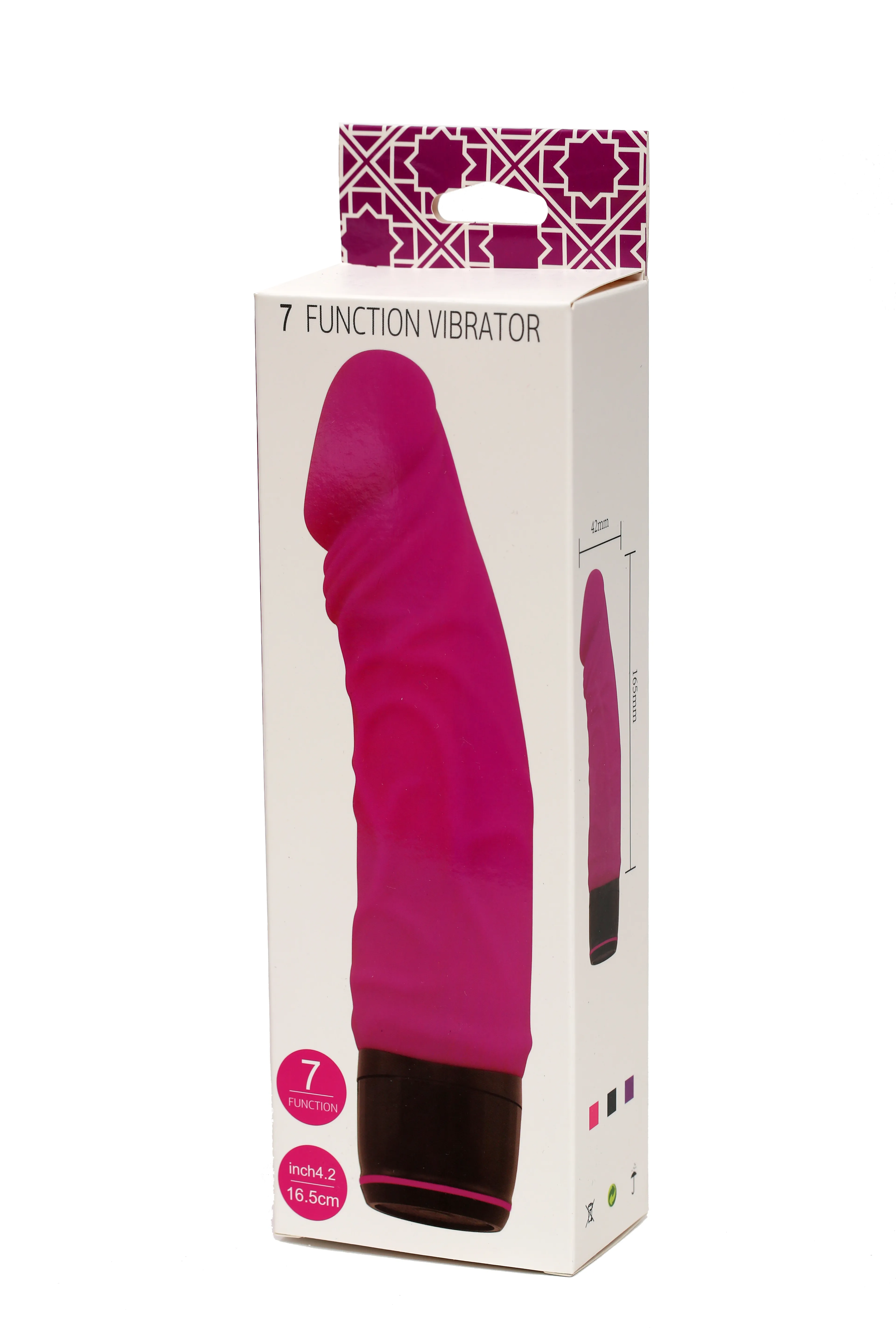 Вибромассажёр розового цвета. Имеет форму члена. Необычайно приятный, рельефный, выполненный из высококачественного силикона , передающий эффект мягкой реалистичной текстуры кожи, не имеет швов. Виброэлемент расположен по всей длине изделия. Вариации вибрации регулируются при помощи кнопки, расположенной в основании. Работает от 2-х батареек типа АА (в комплект не входят). Общая длина – 19,5см, основной диаметр 3,5 см, максимальный диаметр в изгибе головки -4,2 см. Упаковка в виде картонной коробки.