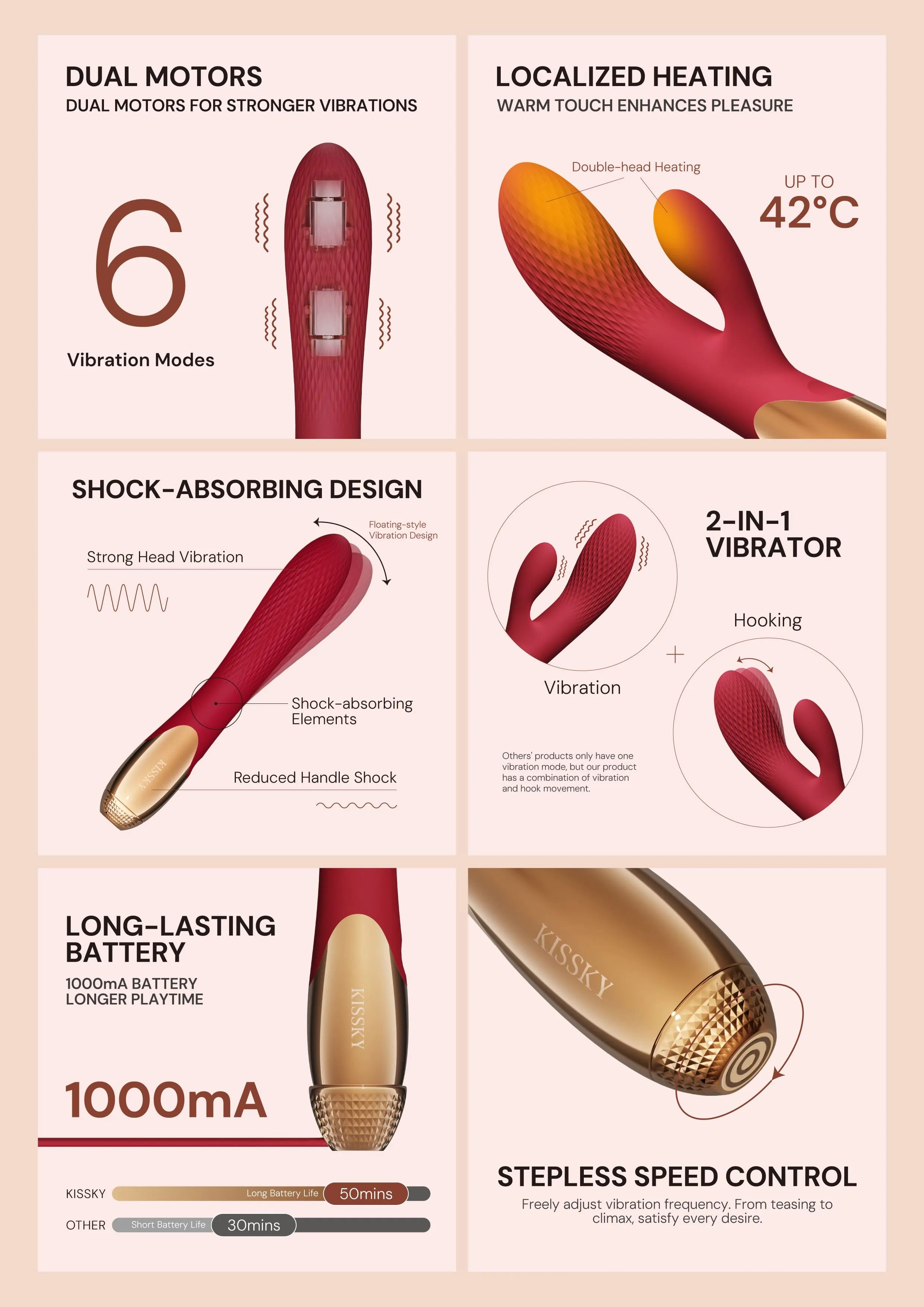 • Система двойного наслаждения: Две независимые головки обеспечивают одновременную мощную стимуляцию, ведущую к более ярким и полным оргазмам.