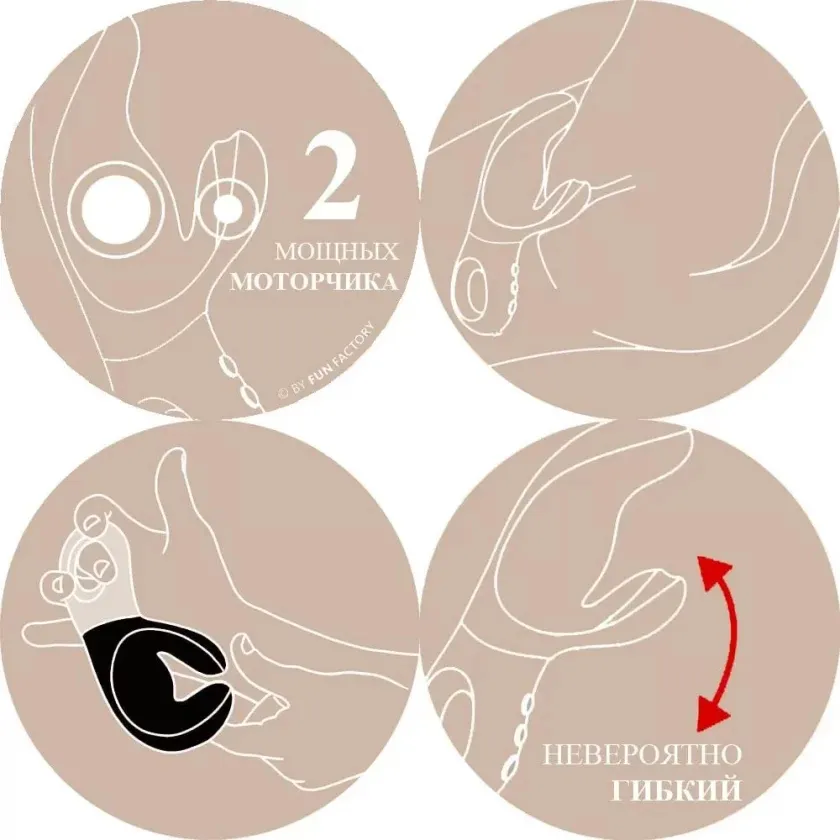 Мотор в вагинальном отростке работает на особенно низких частотах — от 50 до 75 ударов в секунду. Это обеспечивает глубокое проникающее воздействие на интимные участки тела. А тот мотор, что установлен в клиторальном отростке, наоборот, высокочастотный — выдаёт от 140 до 220 ударов в секунду. Его воздействие поверхностное и похоже на щекотку.