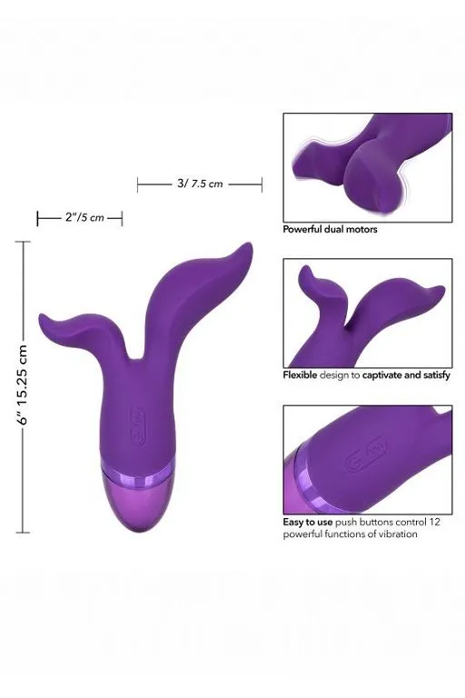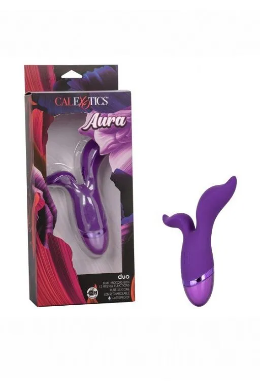 Aura Duo – перезаряжаемый ультра гибкий двойной вибромассажер. Мощный мотор обеспечивает 12 интенсивных функций вибрации, пульсации и эскалации на каждом из отростков.