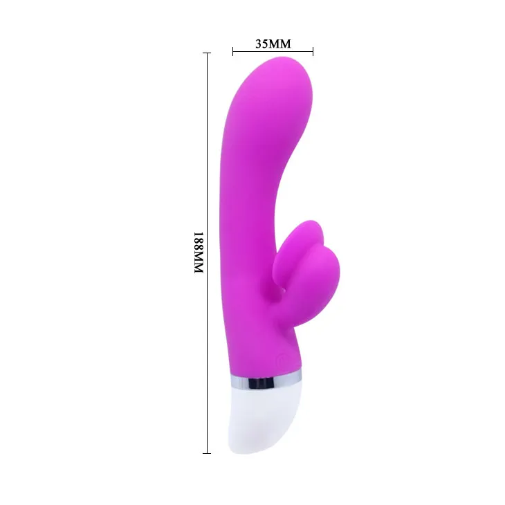 Вибратор с клиторальным стимулятором. Функции вибрации доступны в 30-и режимах. Регулируются с помощью кнопки у основания игрушки. Материал 100% силикон. Общая длина изделия 19 см, рабочая длина составляет 10,5 см, максимальный диаметр – 3,3 см. Клиторальный стимулятор прибавляет ощущений во время использования. Работает от 2-х батареек типа ААА (в коплект не входят). Длина - 5,5 см, максимальный диаметр - 3 см. Имеется сумочка для хранения. Упакован в картонную коробку.