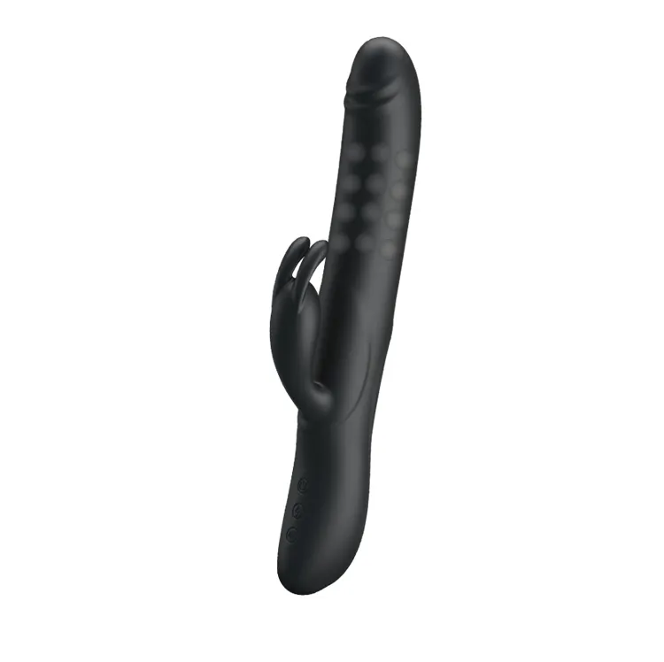 Черный вибратор с функциями вращения ствола и мощным клиторальным стимулятором в форме зайчика с 7 режимами вибрации и 4 режимами ротации (регулируются кнопками на основании). Вращение осуществляется при помощи металлических шариков , расположенных внутри изделия. Имеется возможность менять направление вращения. Водонепроницаемый. Материал изготовления - силикон. Работает от USB ( в комплект входит). Рабочая длина 16 см, диаметр 3,5 см, длина стимулятора 7 см, диаметр 2 см. Упаковка: картонная коробка с принтом.