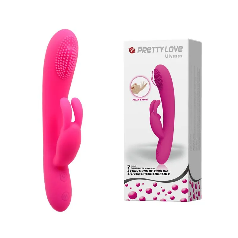 Силиконовый вибратор c клиторальным отростком в виде зайчика. Имеет 7 режимов вибрации и пульсации, лёгкое управление при помощи кнопок в основании. Главное достоинтсво данного вибратора кроится в его клиторальном стимуляторе - бегающая вниз-вверх выступающая горошина (имеет 3 разных режима). Материал изготовления- силикон. Общая длина-19,5см, рабочая длина- 12,5см,максимальный диаметр-3см.Длина клиторального отростка-7см,диаметр-2,5см. Зарядка происходит от USB (в комплекте), имеется так же мешочек для хранения.