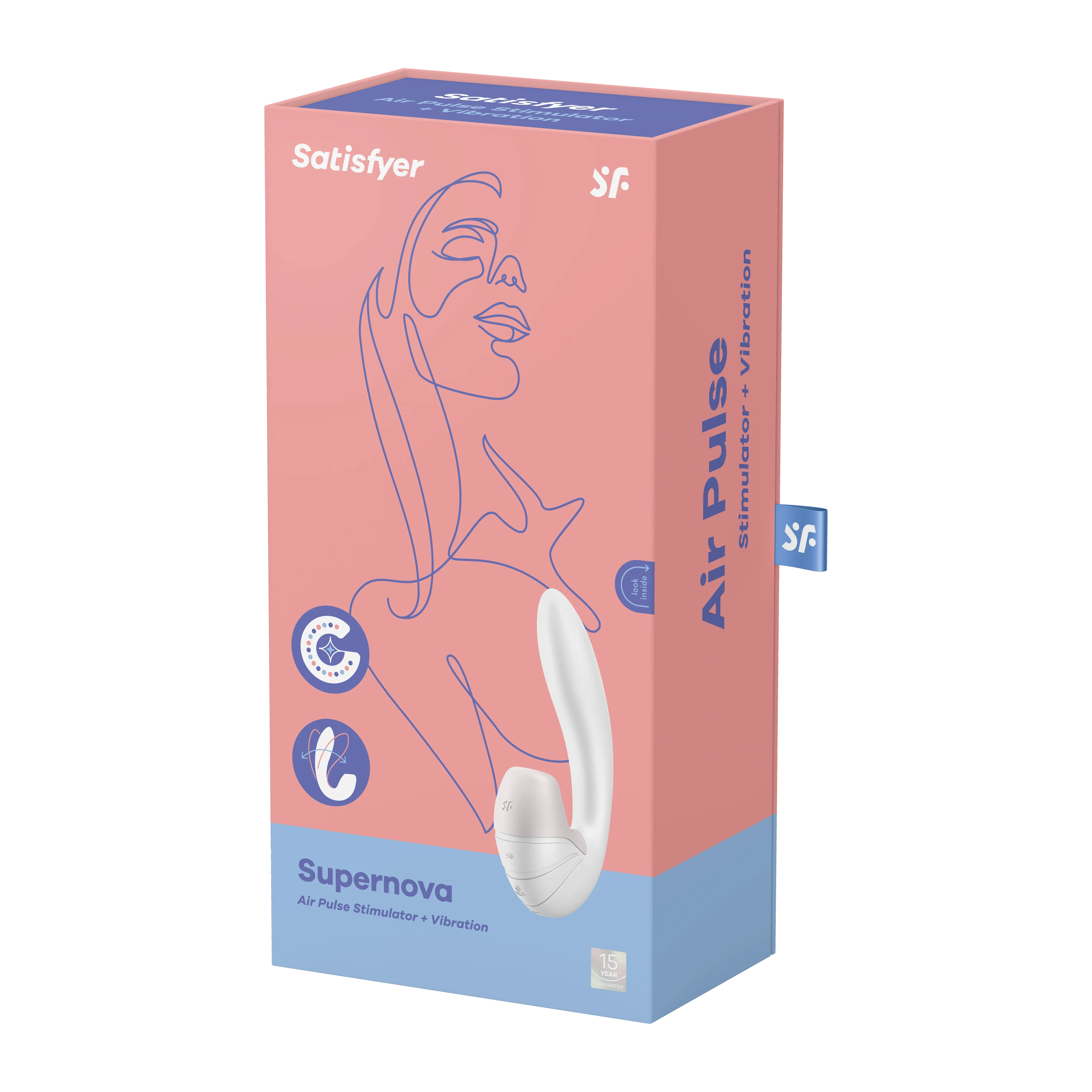 Satisfyer Supernova - многофункциональный стимулятор, который имеет футуристичный дизайн и улучшенную форму вибратора-кролика с очень гибким корпусом. Благодаря технологии silicone Flex и цепному соединению внутренний гибкий вал можно регулировать до 45 градусов и, таким образом, он идеально подойдет для любого строения тела. Supernova воздействует на клитор с помощью технологии Air Pulse и на зону G с помощью мощных вибраций. Оснащен двумя мощными моторчиками, которыми можно управлять по отдельности, что позволяет создавать многочисленные комбинации. Стимулятор имеет 10 режимов вибрации и 11 режимов вакуумно-волновой стимуляции. Изготовлен из гипоаллергенного силикона.
