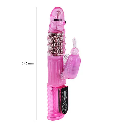 Вибратор Хай-Тек Бабочка Розовый BW-043006 Вибратор Хай-Тек BW-043006 со стимулятором клитора в форме бабочки возбудит женское тело и добавит нотку пикантности в Ваш секс. Интим-игрушка имеет дерзкий дизайн, ярко выраженную головку и неукротимые металлические шарики, которые доведут девушку до предельной точки наслаждения. Многофункциональный вибратор Хай-Тек позволит окунуться в мир, где возможно абсолютно все! Стильная интим-игрушка покорит свою обладательницу и ублажит все уголки ее тела. Характеристики вибратор Хай-Тек Бабочка Розовый BW-043006: цвет – розовый, материал – поливинилхлорид, общая длина – 25 см, рабочая длина- 11 см, диаметр – 3,8 см, производитель – Baile (Китай). Имеет 8 режимов вибрации и 8 режимов ротации. Работает от 4х батареек ААА (нет в комплекте). Вес игрушки: 363 гр. Упаковка- картонная коробка с принтом.