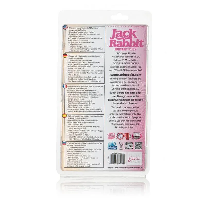 Rotating Jack Rabbit обладает множеством достоинств, гарантирующих Вам незабываемое удовольствие. Форма вибратора разработана таким образом, чтобы Вы получили двойное наслаждение от стимуляции нескольких эрогенных зон: головка будет воздействовать на стенки влагалища, в то время как небольшой стимулятор в виде зайчика будет ласкать клитор. Игрушка обладает 10 режимами вибрации, пульсации и эскалации, а также 3 режимами ротации, которые Вы сможете комбинировать между собой для получения различных ритмов вибрации. Одной из особенностей игрушки является наличие особой кнопки, которая в разы увеличивает темп вибраций, позволяя моментально достичь яркого оргазма.