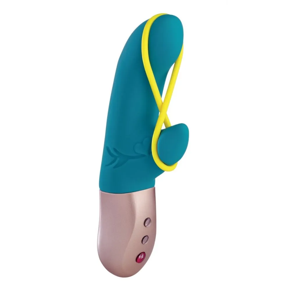 Amorino - это инновационный вибратор с силиконовой лентой, натянутой между закругленными кончиками для стимуляции половых губ. При необходимости неоновую желтую ленту легко снять.