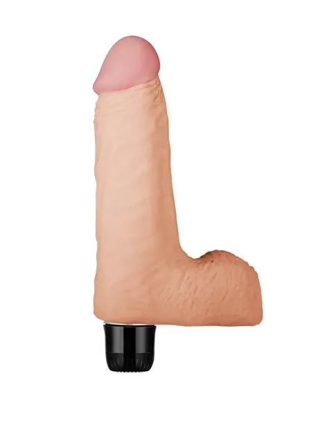 Вибратор от компании Lovetoy выполнен в реалистичном дизайне из качественного поливинилхлорида, не содержащего фталатов. Нежный материал и реалистичный вид игрушки позволят Вам представить, будто Вы держите в руках настоящий член. Крупная головка вибратора будет воздействовать на точку G, увитый венками ствол простимулирует стенки влагалища, а крупная мошонка будет ласкать клитор или промежность. Несколько скоростей вибрации еще больше усилят Ваши ощущения от интимного массажа. Управлять скоростями можно при помощи поворотного регулятора в основании массажера. Работает он от двух батареек ААА (в комплект не входят).