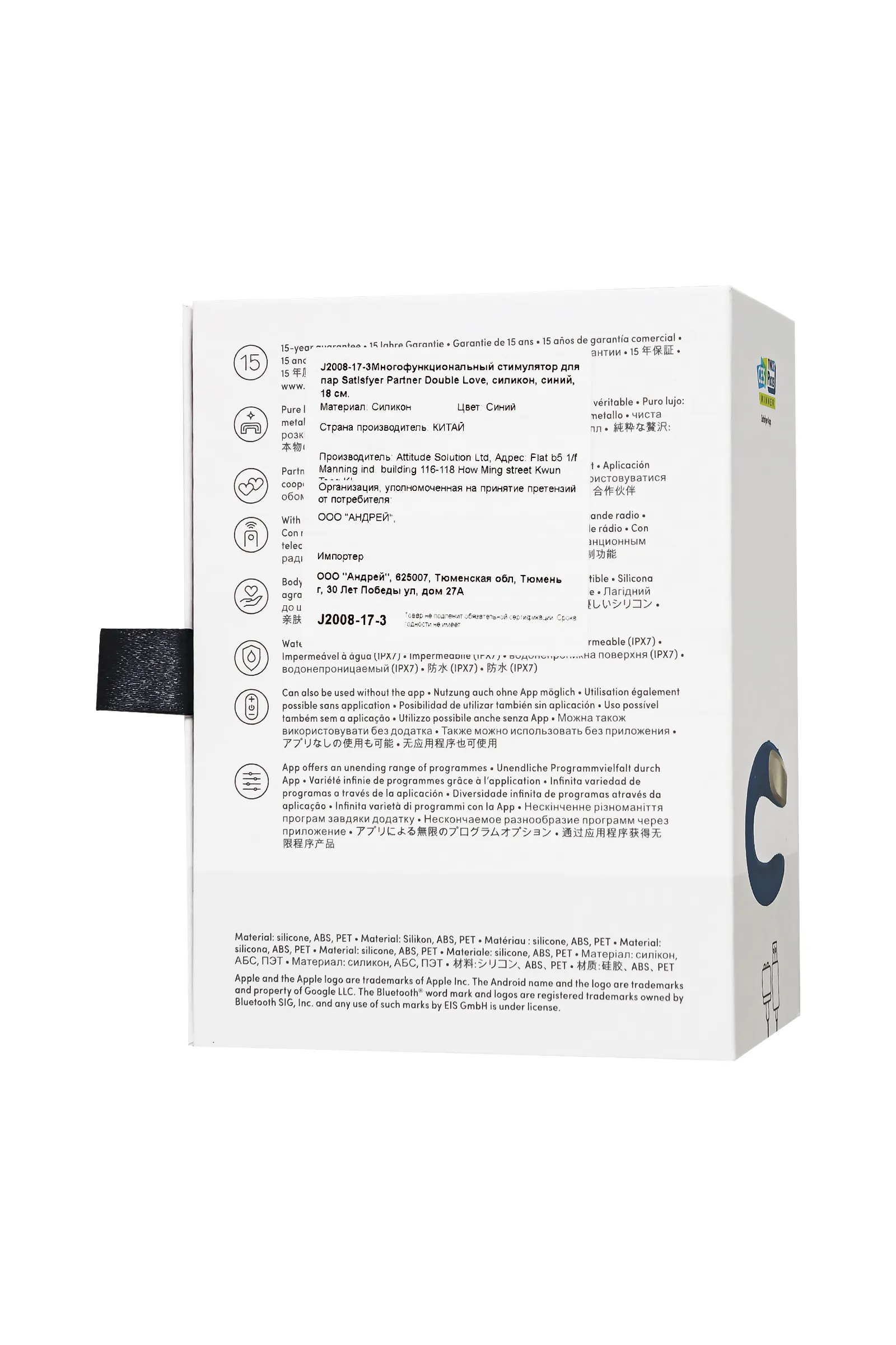 Представляем вам Double Love от Satisfyer – роскошный вибратор для пар, который раскроет перед вами новые грани удовольствия в интимной жизни. Его изогнутый стержень в форме "U" обеспечивает одновременную стимуляцию клитора, точки G и пениса, создавая невероятные ощущения для обоих партнеров. Клиторальная часть также приносит дополнительное удовольствие, делая ваши моменты особенными и незабываемыми. Два мощных мотора гарантируют интенсивные вибрации, акцентируя воздействие на чувствительные зоны. С 10 предустановленными режимами вибрации, управление устройством становится легким, благодаря кнопкам на корпусе или пульте дистанционного управления. Но удивительное в Double Love – его возможности через приложение Satisfyer Connect. Вы можете создавать свои уникальные режимы вибрации, чтобы вибратор точно соответствовал вашим предпочтениям. Это дает вам контроль над удовольствием и позволяет наслаждаться интимными моментами по-своему. А возможность вибрировать в такт музыке делает взаимодействие еще увлекательнее. Изготовленный из шелковистого медицинского силикона, Double Love имеет гладкую поверхность, приятную на ощупь, и быстро принимает температуру вашего тела. Металлический наконечник на клиторальной части добавляет нотку роскоши и создает контрастные ощущения. Для максимального удовольствия и долговечности устройства рекомендуется использовать качественную водную смазку. После использования просто очистите вибратор теплой водой и специальными бактерицидными спреями для интимных изделий. И не забудьте о его водонепроницаемом покрытии, которое позволяет наслаждаться им даже в душе или ванне. Позвольте себе и вашему партнеру наслаждаться безграничным удовольствием и достичь взаимных оргазмов, которые запомнятся на всю жизнь. Double Love от Satisfyer – для настоящих ценителей искреннего наслаждения. Особенности: Инновационные технологии для совместного удовольствия пары. Одновременная стимуляция зоны G, клитора и пениса Два супер мощных мотора Дистанционное управление с помощью пульта или приложения Современный дизайн и эргономичная форма 10 режимов вибрации и неограниченное количество режимов в приложении Satisfyer Connect с подключением через Bluetooth. Нежный и эластичный силикон без запаха, без аллергенов и вредных для здоровья веществ, цвет – синий, металлическая деталь. Водонепроницаемый (IPX7) - можно играть в душе и ванной (не более 30 минут, на глубине не более 1 м) Перезаряжаемый, магнитный USB-кабель.