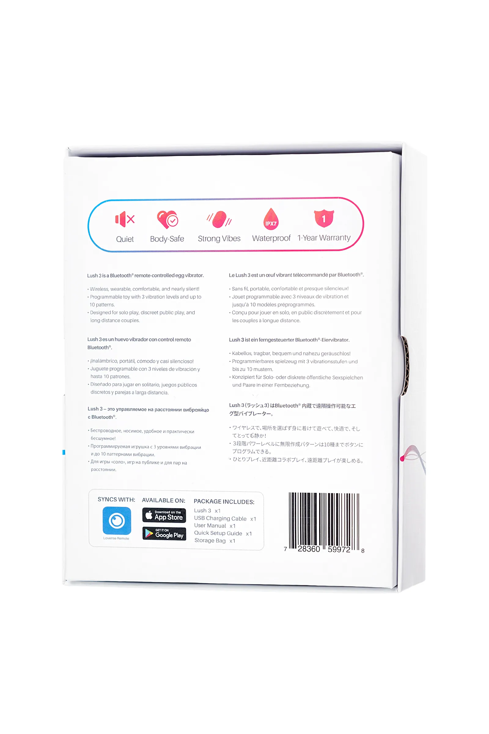 - собственное приложение Lovense Remote создано для того, чтобы вы могли полностью контролировать Lush 3, выбирать можно из 3 скоростей и 10 ритмов. Кроме того, вы сами можете придумывать новые варианты пульсации;