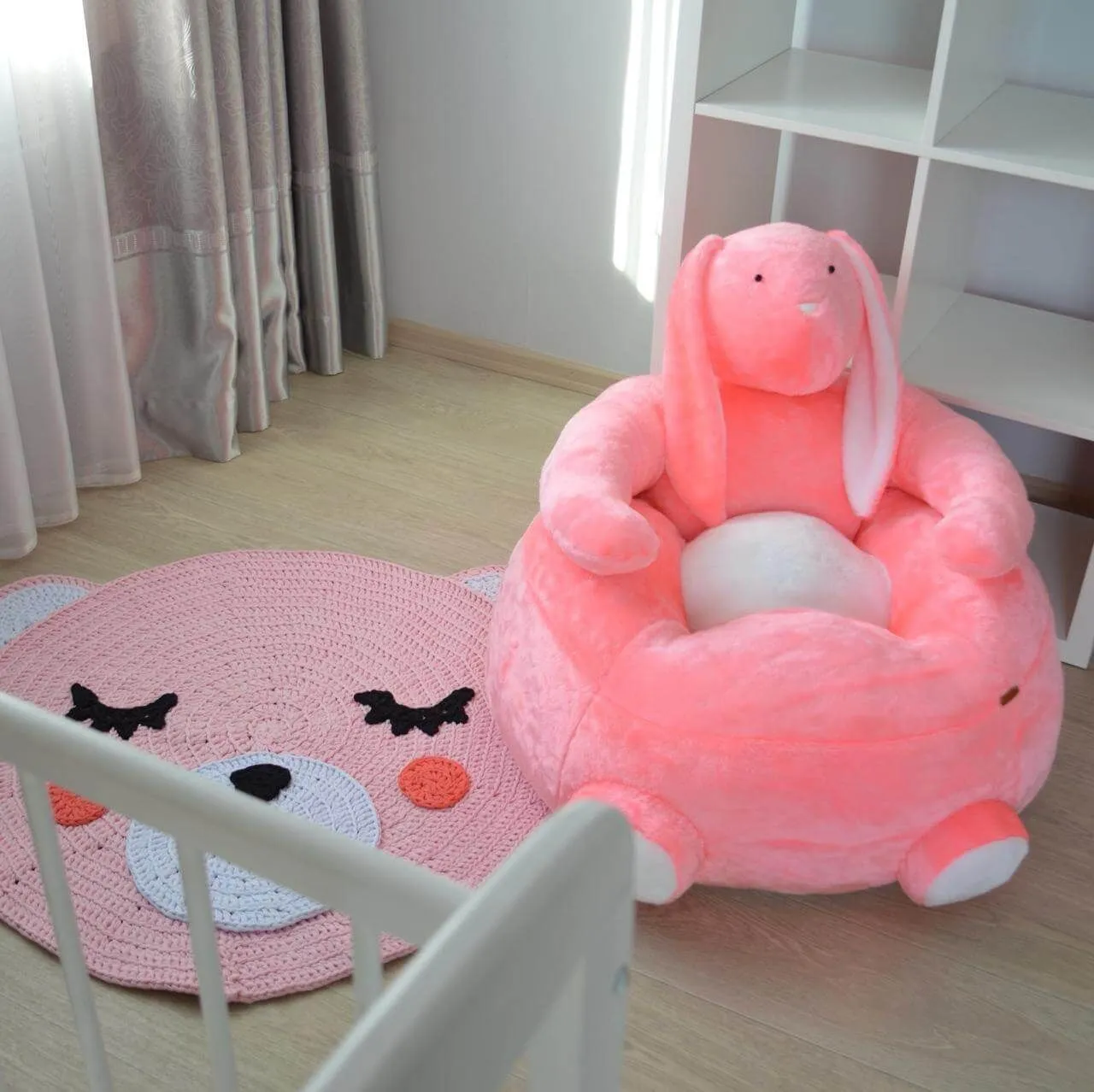 Очаровательный пуфик в виде крольчонка обязательно понравится Вашему малышу! Сидеть на нем будет очень приятно и удобно, ведь он такой пушистый и мягкий. На пуфике будет очень комфортно рассматривать книжки с картинками, смотреть телевизор или просто отдыхать от активных игр. Также такой необычный пуфик будет отлично смотреться в любой детской комнате.