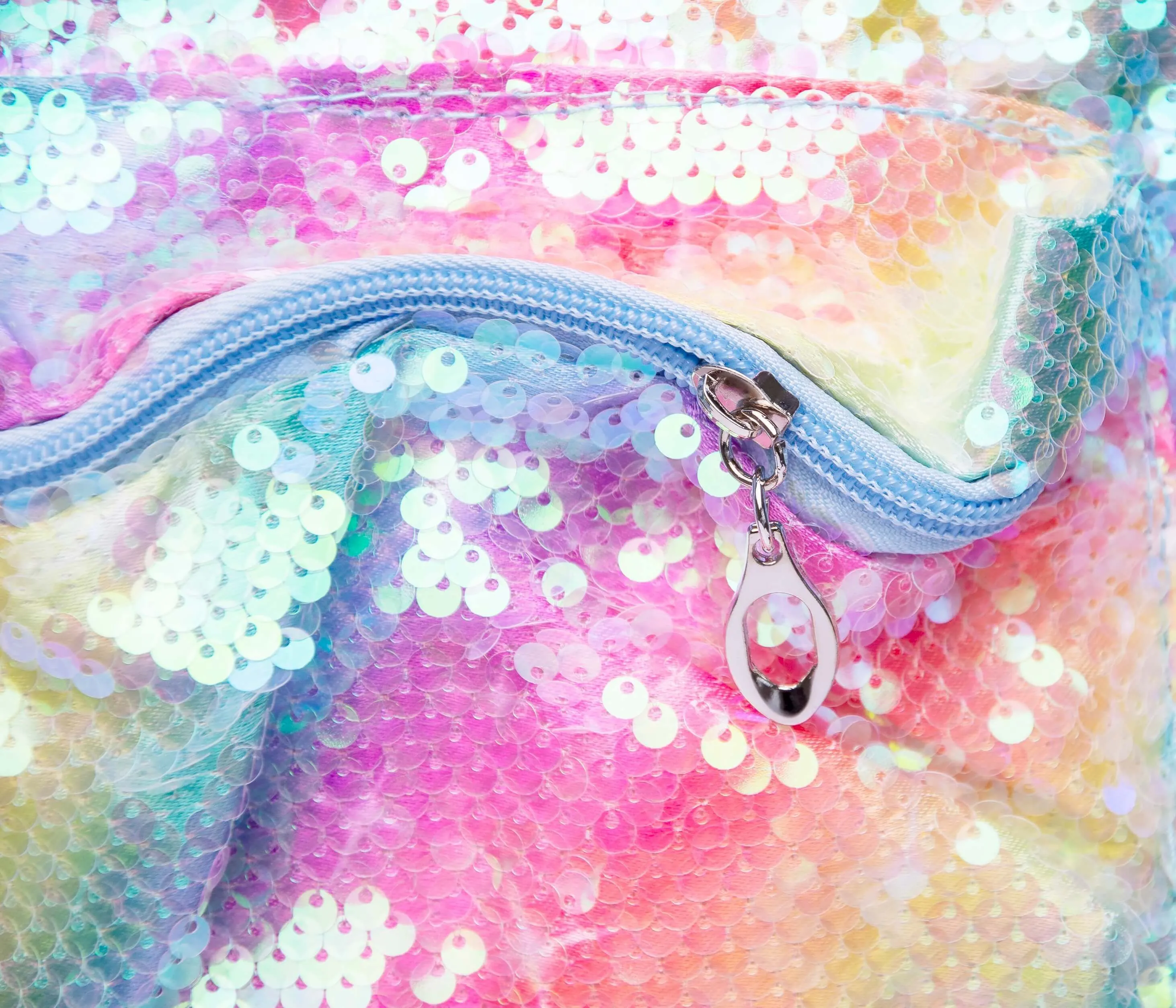 Очаровательный голубой рюкзак с ушками, усыпанный переливающимися пайетками.